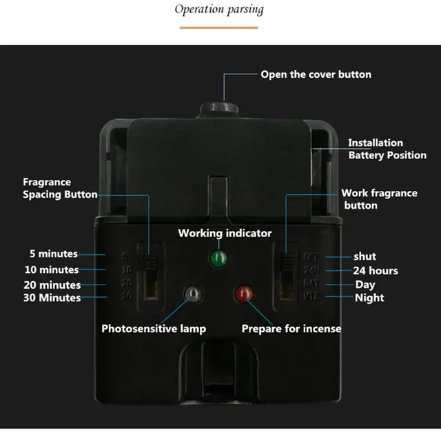 1. Open the machine,put on the battery and perfume bottle